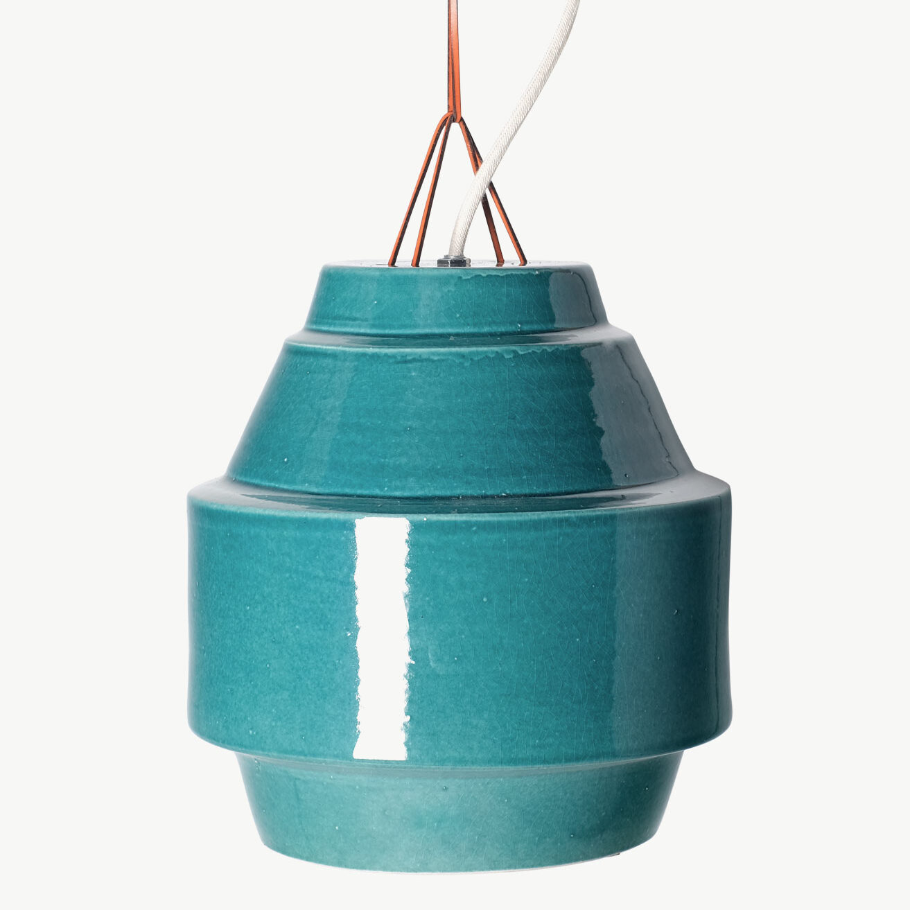 - Content: 1 pending lamp, beige fabric-covered electrical cable (140 cm long), and orange leather cord